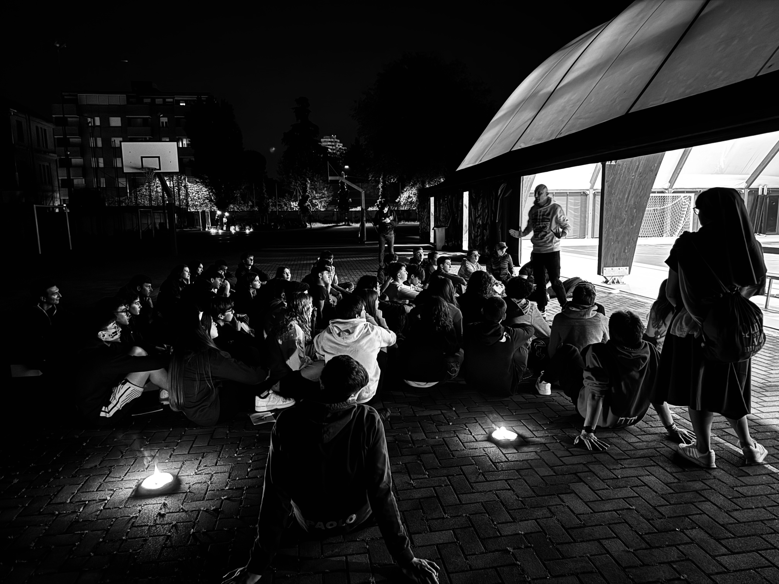 Dopo la cena i ragazzi hanno vissuto un momento di veglia itinerante per i cortili della casa salesiana. Tra le tappe del momento di preghiera hanno portato la loro testimonianza suor Lucia Sartirani, Figlia di Maria Ausiliatrice che da 2 anni svolge il suo servizio nel carcere minorile di Bologna, e Alessandro Ferrari di APE Social Wear, che ha scelto di generare il bene con il suo lavoro nel settore dell’abbigliamento.