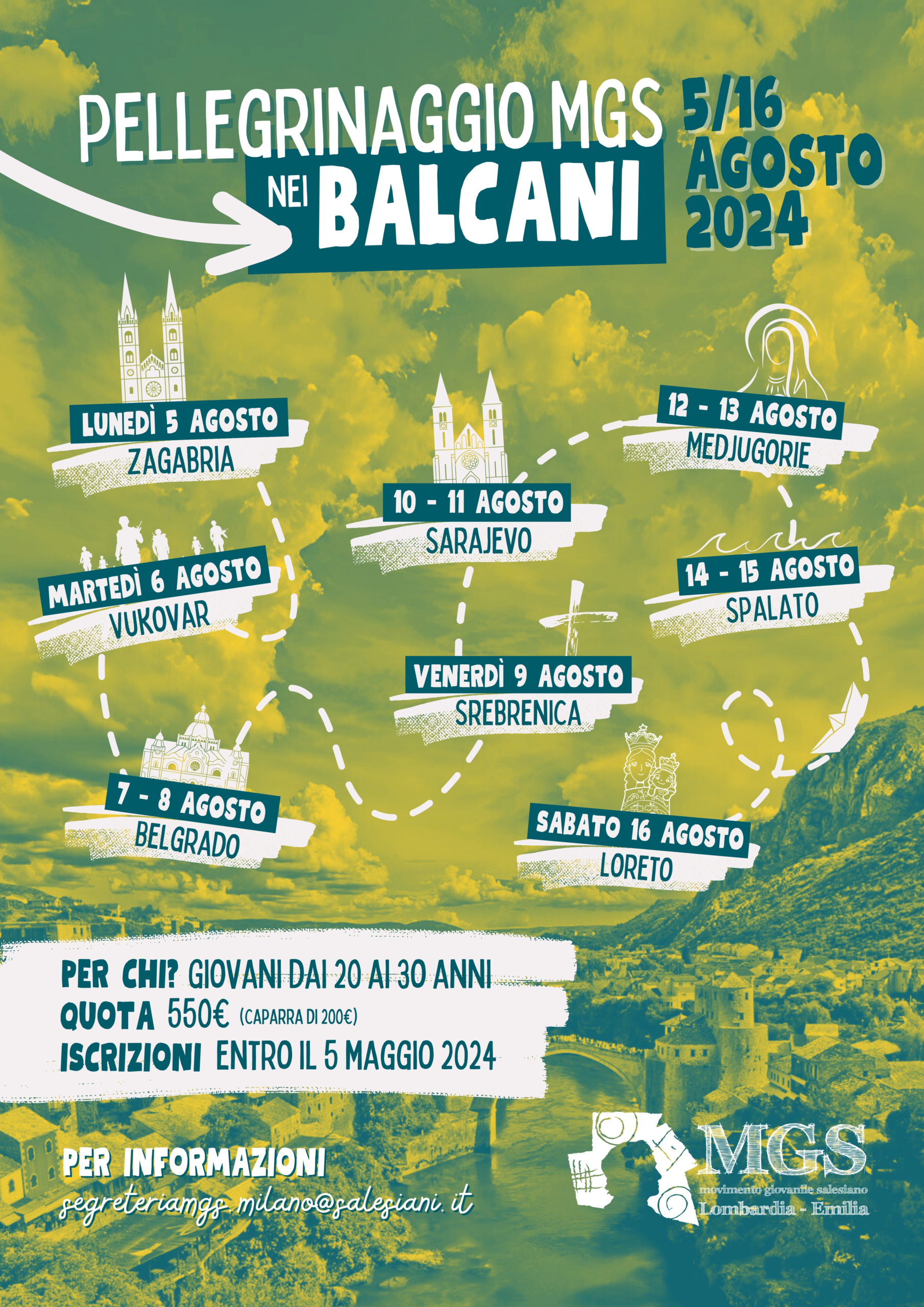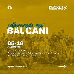 Il Pellegrinaggio MGS è la proposta estiva che si rivolge alla fascia più alta dei giovani (20-30 anni). La destinazione di quest’anno saranno i Balcani, con un itinerario storico culturale e spirituale che ci aiuterà ad interiorizzare il valore della pace e a pregare perché esso raggiunga ogni angolo della terra.